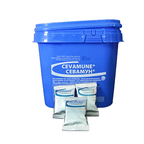 CEVAMUNE® is a soluble scored tablet that combines both the roles of chlorine neutraliser and colouring agent. This routine vaccine administration improvement product is vital for performing proper vaccination through drinking water.