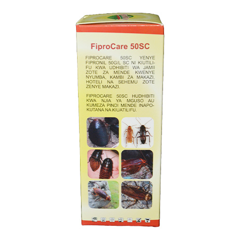 Fiprocare 50SC is effective for the control of all cockroache communities in homes , residence camps, hotels and all residential areas. Fiprocare 50SC controls by touch or ingestion when cockroaches are encountered with the pesticide.